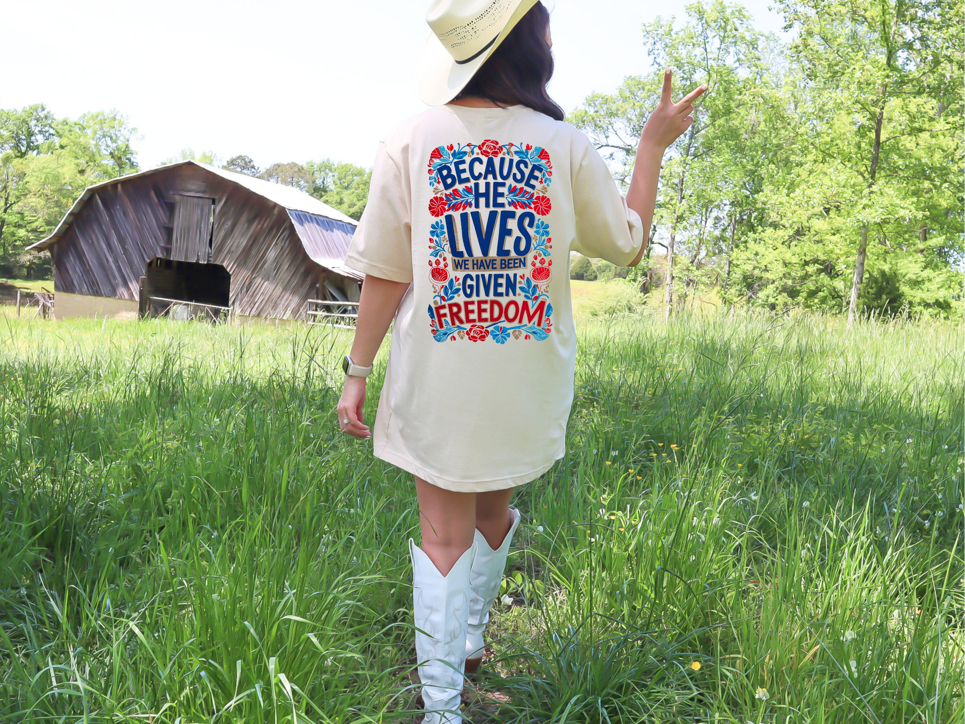 ✝️ Bold back print with Because He Lives, We Have Been Given Freedom
