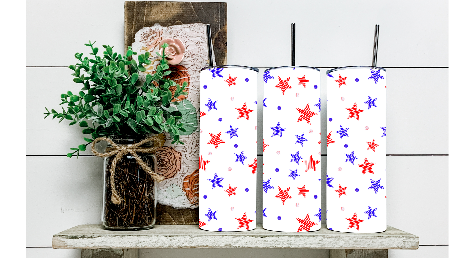 So why settle for an ordinary tumbler when you can show off your love for country and style with our Red, White, and Blue Stars Tumbler? Order yours today and be the talk of your next gathering.