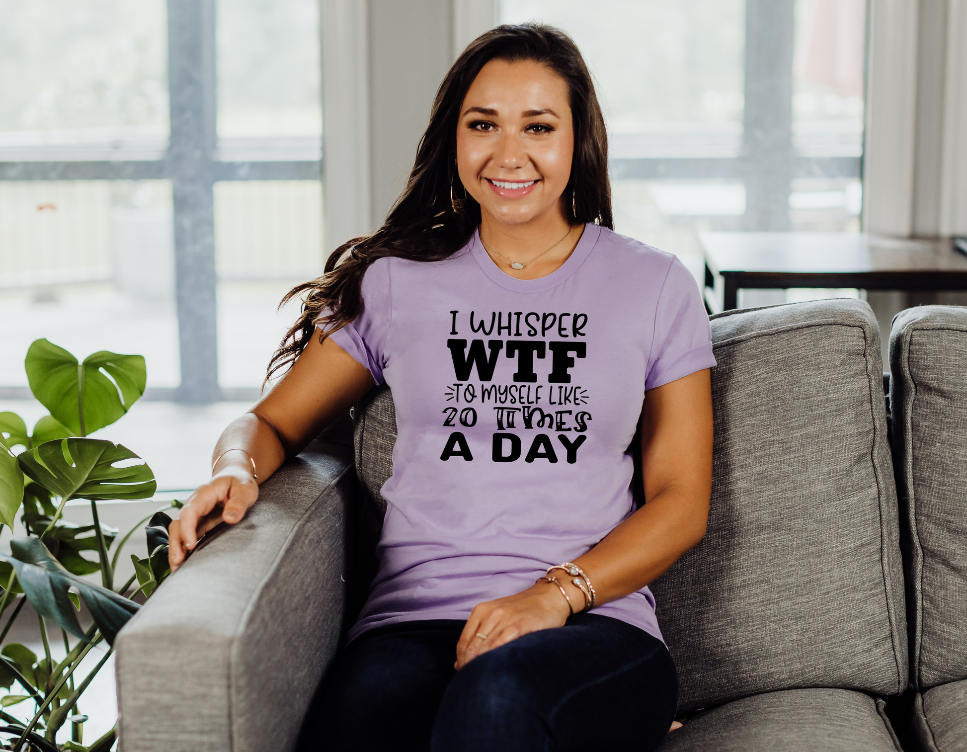 Express Your Daily WTF Moments with Our 'I Whisper WTF at Least 20 Times a Day' T-Shirt - Order Now!