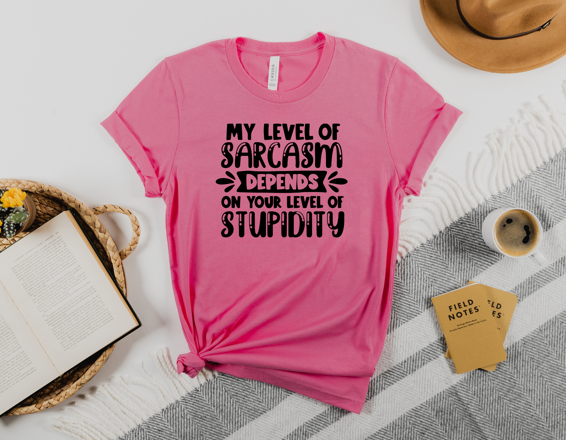 Embrace your sharp wit and let your sarcasm shine with our "My Level of Sarcasm Depends on Your Level of Stupidity" T-Shirt. This bold and humorous shirt is perfect for those who have a knack for clever comebacks and enjoy a good dose of sarcasm. Whether you're dealing with clueless individuals or just want to add a touch of humor to your everyday life, this shirt is sure to make a statement.