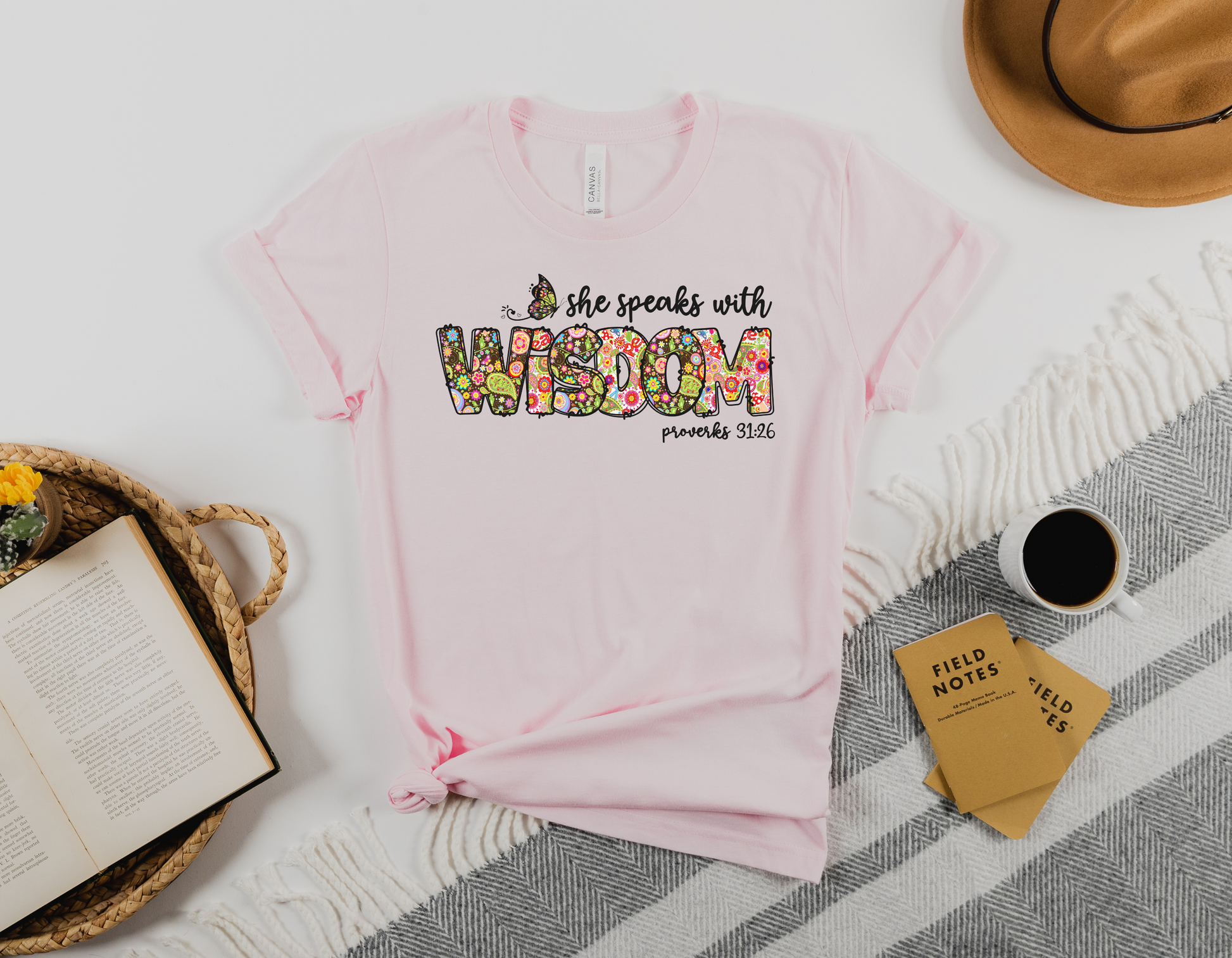 Proverbs 31:26, She Speaks With Wisdom T-Shirt - Order Now and Showcase Your Wise Words!