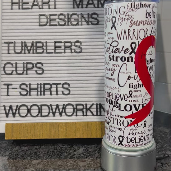 The tumbler features inspiring messages in bold lettering, a reminder of strength and resilience for those who have been affected by heart disease. The design is perfect for Heart Disease Awareness and everyday use, making it a great gift for anyone in your life who has been affected by heart disease or wants to raise awareness.