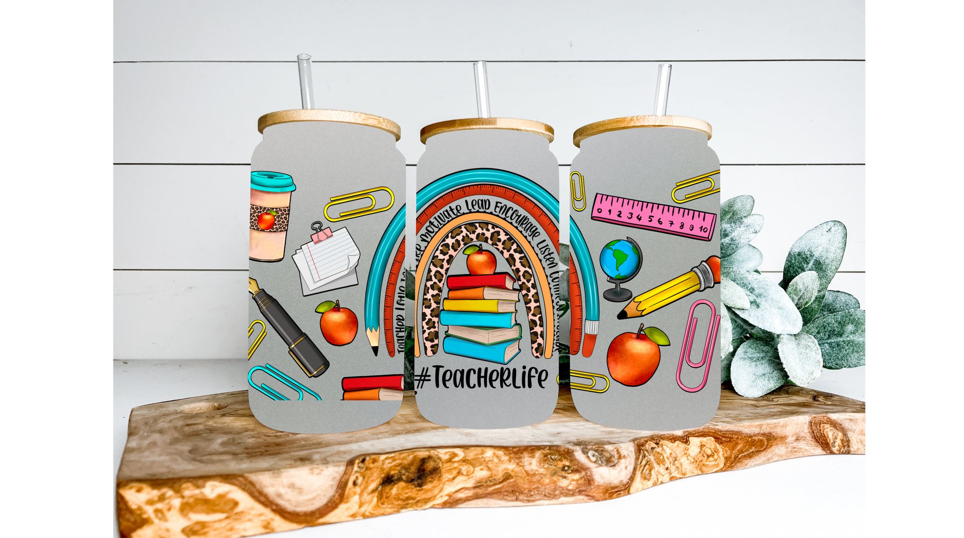 Teach, Inspire, Grow: Teacher Life Libbey Glass Cup for On-the-Go Sipping